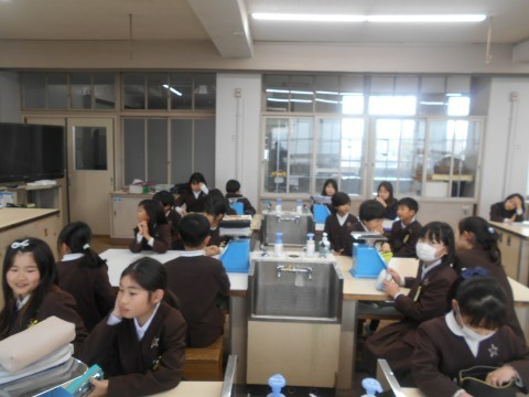 理科室で「ものの体積と重さ」の学習をしていました。いろいろなものを計っていました。ものの種類によって重さが違うことを実感していました。これから学びを深めていきます。