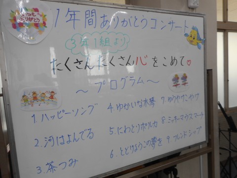 3年生では、1年間のしめくくりコンサートが行われていました。
