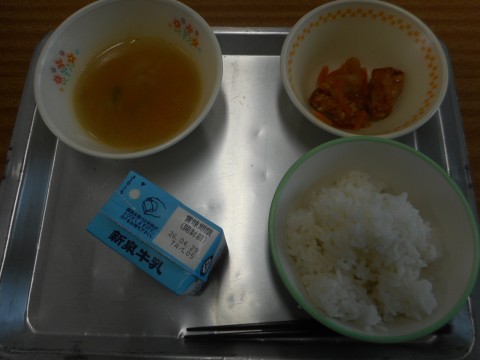 今日の給食は、ごはん、はるさめスープ、鶏のから揚げ野菜あんかけ、牛乳、でした。
