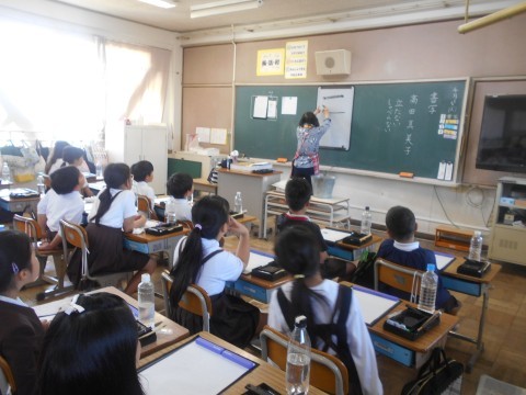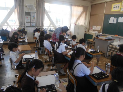 習字(毛筆)の学習でした。初めての学習だったので、筆や道具の使い方もしっかり学んでいました。