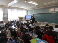 小数のかけ算の学習をしていました。筆算の仕方を考えていました。パソコンも活用し...