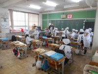 今日の給食は、ごはん、どんがら汁、鶏肉と里芋のさっぱり煮、フルーツゼリー、牛乳...