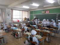 今日の給食は、ごはん、どんがら汁、鶏肉と里芋のさっぱり煮、フルーツゼリー、牛乳...