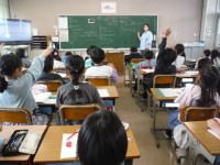 (上の写真)算数の時間の様子です。今日は,大きな数を10倍したり,10分の1した...
