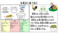 今日の給食の献立です!!春らしい色のグリーンポタージュです。ハンバーグも人気のメ...