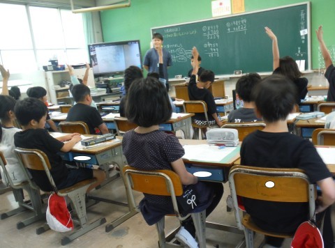 (上、下の写真)算数の時間の様子です。今日は、どちらのクラスのたし算の筆算の仕方を勉強しました。どんどん桁数が増えていますよ。
