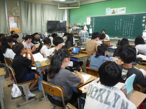 (上の写真)社会の時間の様子です。今日は,徳川家康が天下統一のためにどんなことをしたのかを調べていましたよ。(中の写真)家庭科の時間の様子です。今日は,一食の献立を立てるそうです。今日の給食を思い出しながら考えました。(下の写真)いよいよ明日から修学旅行です。修学旅行の工程をみんなで確かめていましたよ。忘れ物がないように準備を整えてくださいね。