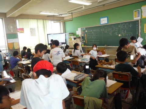 (上の写真)社会の時間の様子です。今日は,自動車工業について学びました。安全性のことや人にやさしい車,環境にやさしい車について調べて,まとめていましたよ。(中の写真)今日は,はとぶえの綴り方,作文を書いていました。ご家族のことや出来事などを思い出しながら集中してかきすすめていました。(下の写真)算数の時間の様子です。今日は,大きさの等しい分数について勉強しました。その後,練習問題をしました。小さな先生が活躍していました。