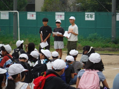 おはようございます!!今日から6年生が修学旅行に行きます。代表の児童が進行し,出発式をおこないました。めあて「みんなでルールを守って,思い出をつくろう!」などのルールをみんなで確認しました。校長先生からは,「ケガなく安全に過ごすために,考えて行動しよう。」とお話がありました。