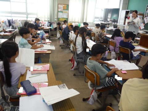 (上の写真)理科の時間の後に様子です。今日は,それぞれの特徴を3ヒントクイズにしていました。みんなでクイズをする時が楽しみですね。(下の写真)国語の時間の様子です。今日は,『ちいちゃんのかげおくり』について読み取りました。2つのかげおくりにおける主人公の気持ちについて探りました!!