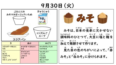 今日の給食の献立です!!9月最後の給食ですよ。残さずに食べてくださいね。