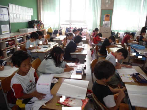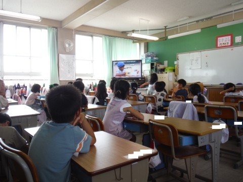 (上の写真)今日は,生活科のテレビを見ていました。リーフレットを作って紹介している様子を見ました。(中の写真)生活科の時間の様子です。今日は,さつまいもの様子を写真に撮っていました。葉の大きさや手ざわり,どんなににおいがするのかを見ていました。(下の写真)国語の時間の様子です。今日は新出漢字を勉強していました。漢字ドリルやノートに練習をしました。