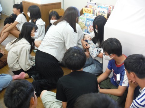 今日は,助産師さんや保健師さんを講師にお招きして,「いのちの授業」を実施しました。「いのち」について,「いのちをまもる」ということに重きをおき,専門的なお話をしていただきました。途中,赤ちゃん模型の人形をだっこしました。「意外と重たかった。」「お家の猫と比べると軽かった。」とにこにこと笑いながら,少し照れながら感想を教えてくれました。