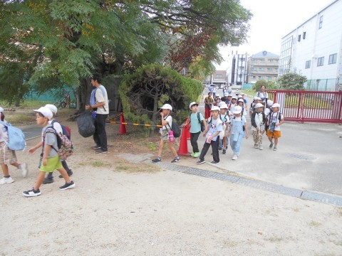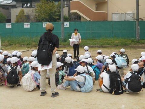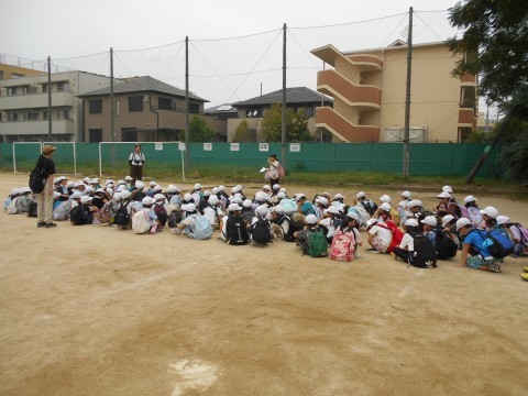 おかえなさい。無事に学校に到着しました!!最後に,先生からのお話を聞きました!!