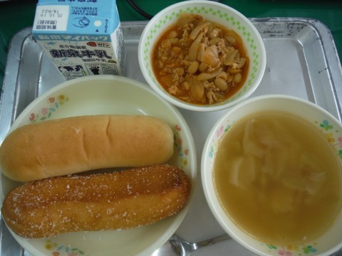 今日の給食の献立です!!給食の献立の中でも人気のある「揚げパン」です。しっかり食べてくださいね。