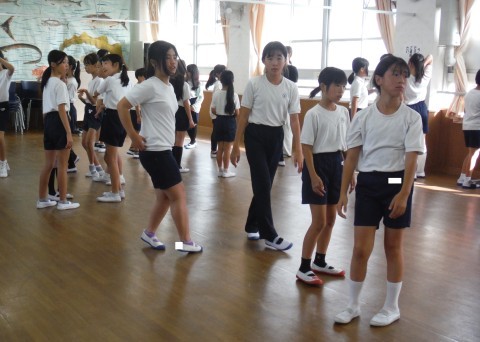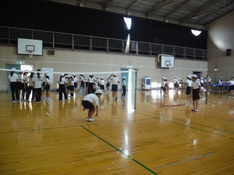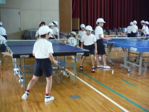 体育館でのクラブ,バトミントン,卓球クラブです。シャトルや球をおいかけていました。ランチルームでは,ダンスクラブが,動画の振り付けをみながら練習していました。