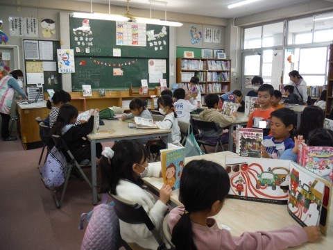 (上の写真)算数の時間の様子です。今日は九九におけるマスの計算の仕方を練習していました!!計算の仕方がわかるとスイスイ解いていましたよ。(中の写真)算数の時間の様子です。今日は,正方形について調べました。辺の数や長さ,直角などについて説明していました!!(下の写真)図書の時間の様子です。それぞれが興味のある本や好きな分野の本を選び,読書に時間にひたりました。読書の秋ですね。
