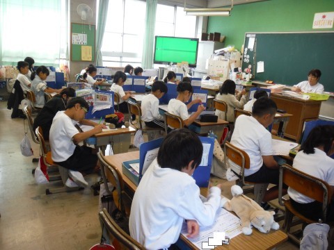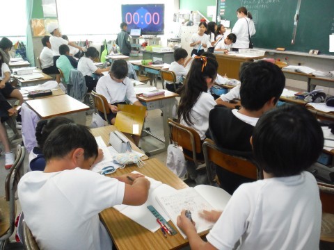 (上の写真)算数の時間の様子です。今日は,計算の仕方について考えました。ノートに考えを図や文章にまとめていました。(下の写真)国語の時間の様子です。今日は,テストをしていました。じっくり読んで問題に取り組みました。