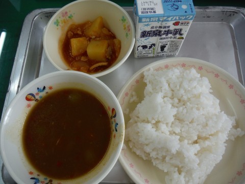 今日の給食の献立です!!最後の「きたで,万博」メニューです。今日はサモアの食文化ですよ!!