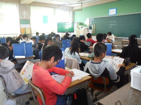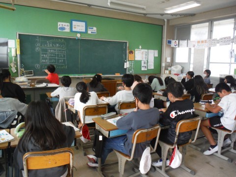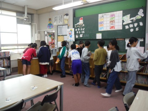 (上の写真)図書の時間の様子です。係の児童が中心となり貸し出しをしていました。(中の写真)算数の時間の様子です。今日は,人口密度について調べていました。北海道を沖縄県を比べてました。(下の写真)家庭科の時間の様子です。今日は,テストしていました。終わったら,各自でできることを学習していました。