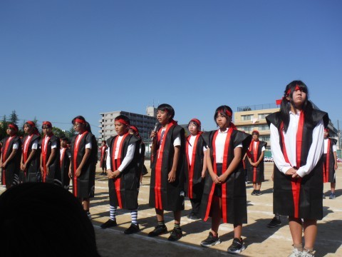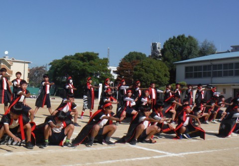 6年生の団体演技,「彩~仲間を信じて最幸の舞台に~」です。それぞれの文字が書かれた法被を身にまとい,みんなで心を一つにして,全力で踊りきりました!!迫力のある演技です!!さすが6年生ですね。