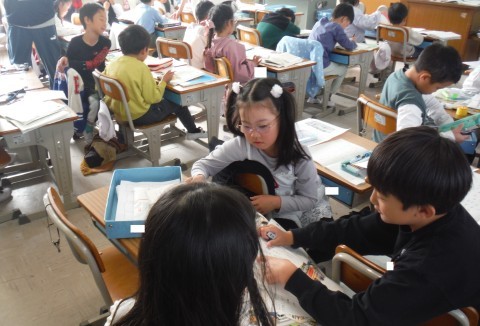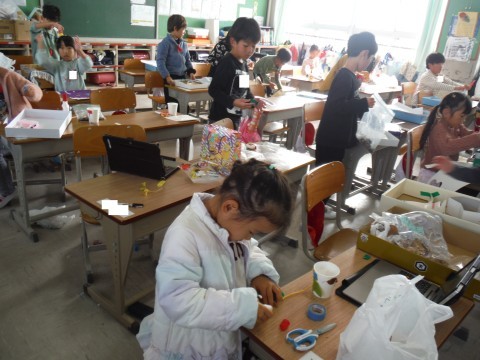 (上の写真)図工の時間の様子です。今日はどんぐりや落ち葉などの秋のものをつくてって工作をしました。どんぐりの迷路などとっても楽しそうでしたよ。(中の写真)国語の時間の様子です。今日は,『じどう車くらべ』において,バスと乗用車の「つくり」と「はたらき」について探りました!!線を引いたところをみんなで交流しました。(下の写真)道徳の時間の様子です。今日は,「きゅうしょくとうばん」というお話をとおして,みんなのために係活動や給食当番など頑張っているとどんな気持ちになるのかを考えました。