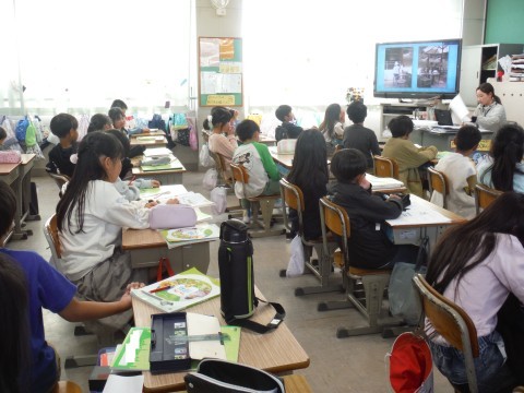 こちらもどちらのクラスも理科の時間の様子です。映像を見ながら,太陽の動きや日なたとひかげのちがいなどを確認していましたよ。
