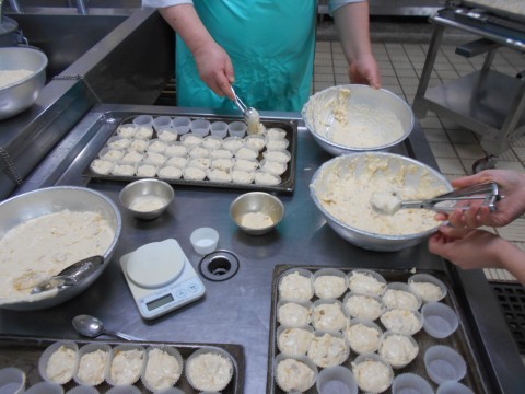 今日は,姉妹都市(アメリカのバークレー)の献立のコーンブレッドです。