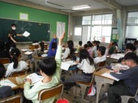 (上の写真)理科の時間の様子です。今日は,温度による空気の体積の変化について実験しました。実験の様子を見て歓声があがっていました。(中の写真)体育の時間の様子です。今日は,縄跳びの練習をしていました。二重跳びやペアと一緒に前跳びなどに挑戦しました。(下の写真)図書の時間の様子です。読み聞かせに後に,今日借りる本を選んでいました。