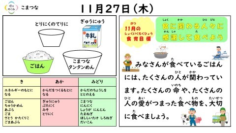今日の給食の献立です!!