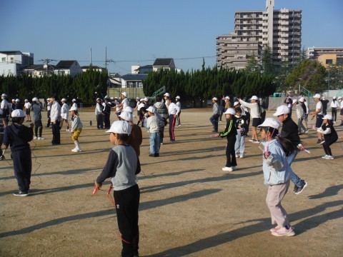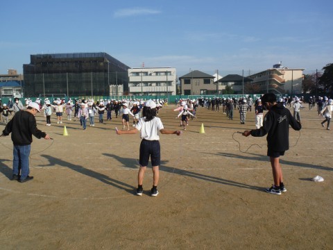 今日は,2,4,6年生のなわとび集会がありました。楽しくなわとびをしながら,体力づくりをしています。準備体操の後には,音楽にあわせて,様々な跳び方にチャレンジしました。
