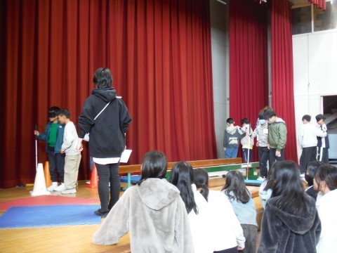 総合的な学習の時間の様子です。今日は,キャップハンディ体験をおこないました。実行委員さんから今日の目的や体験のやり方について説明がありました。そして,保護者の方にもご協力いただきました。車いす体験やアイマスク体験,点字体験,利き手と反対の手で折り紙・文字を書く体験などをおこないました!!体験からえたことを自身や周りの方への接し方などいかしてくださいね。本日はありがとうございました。