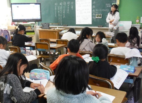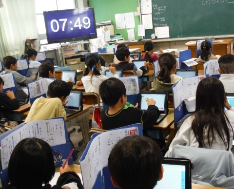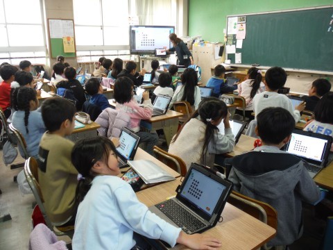 (上の写真)算数の時間の様子です。今日は,九九をつくろうということで,タブレットを使いチョコレートの丸を移動させてかけ算の式をつくりました。(中の写真)算数のテストの時間でした。既にテストをし終わり,タブレットを使って問題を解いていたようです。(下の写真)こちらでも算数の時間の様子です。今日は2学期のまとめの問題をノートに書きながら解いていました。学期末まとめの時期です。