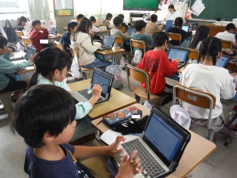 (上の写真)ちょうどタブレット端末を使い,タイピングの練習をしたり,ドリルパークの問題(算数や漢字)などをしていました。(下の写真)国語の時間の様子です。今日は,1年生におすすめの本を1冊選ぶために,話し合い活動するようです。そのために,司会などの役割を知り,どのように話し合いを進めたらいいのかを聞きました。