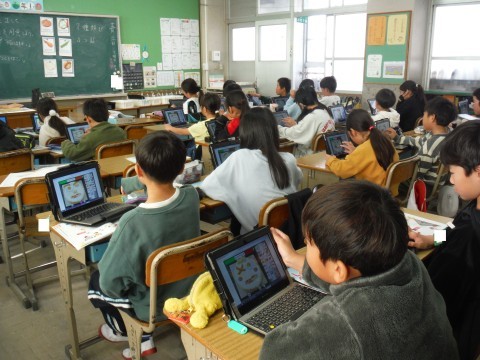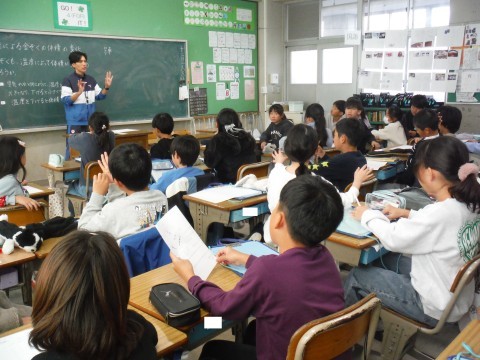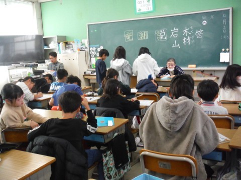 (上の写真)外国語の時間の様子です。今日は,「What do you want?」とピザの具を聞きながら,タブレット端末を操作し,ピザの具をトッピングしていました。友だち好みのピザが完成するとよいですね。(中の写真)次の体育の時間からラインポートボールをするそうです。今日は,みんなでチーム分けについて意見を出し合いました。(下の写真)書写の時間の様子です。今日は,文字の組み立て方,左右や上下の組み立て方に気をつけながら丁寧に硬筆で文字を書きました。