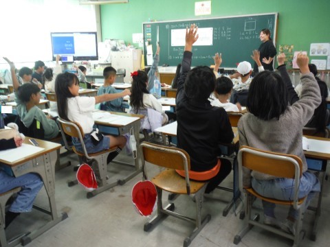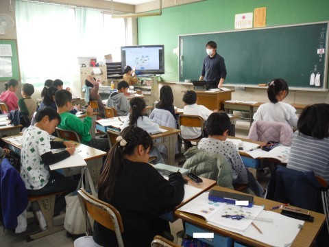 (上の写真)算数の時間の様子です。今日は,テープの長さを読み取りました。そして,1cmより短い長さを小数で表す方法を知ることができました。(下の写真)こちらでも算数の時間の様子です。今日は,コンパスを使って地図を調べました。長さを測る時にもコンパスを活用することができましたね。