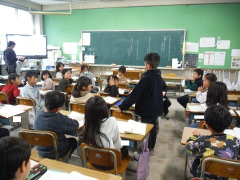 (上の写真)図書の時間の様子です。冬休み用の3冊を選び終わり,友だちと読んだり,個人で読んだりして読書の時間を楽しみました!!(中の写真)道徳の時間の様子です。今日は,係活動のお話を通して,みんなのために働くと,どんな気持ちになるかについて考えました。みなさんはどうですか。(下の写真)国語の時間の様子です。今日は,登場人物に友だちがいるのかどうかについて考えました。発表する人の方をしっかり見て聞いていました。