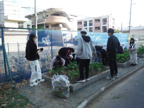 こちらでもクリスマスカラーの画用紙を使い掲示物を作っていました。体育館や体育倉庫の掃除,花壇の草抜きなどをしていました。学校のためにありがとうございます。