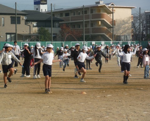 今日は,2,4,6年生のなわとび朝会がありました。体育委員会の児童が前に出て体操や跳び方の見本を見せていました。今日も曲に合わせてリズムよく跳んでいる児童が多くなりました。なわとび朝会はこれで最後となりますが,なわとび等を継続し,日頃からの体力づくりにはげんでくださいね。