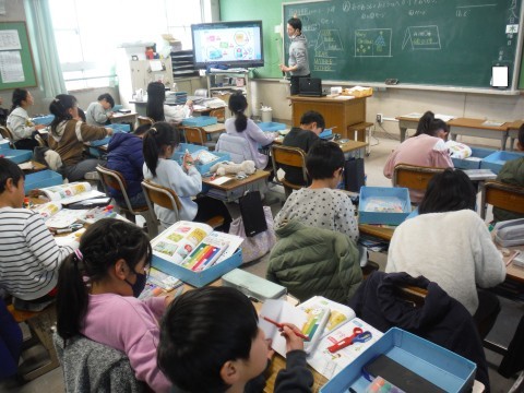 (上の写真)外国語活動の様子です。今日は,お家の方へのクリスマスカードを作っていました!!「Merry Christmas」を英語で書くことにもチャレンジしていました。(下の写真)こちらでは算数のテストをしていました。みんなよく見直しをしているようでした。最後の問題までしっかり見直してくださいね。
