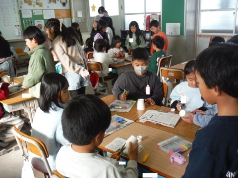 (上の写真)今日は,生活科等のファイルにプリントの整理をしていました。プリントを返してもらうごとに,「こんな勉強をしていたなぁ。」と振り返っているようでした。(下の写真)今日は,1年生に「こま」の作りを方を伝えに行きました。紙コップの切り方などの作り方を,1年生の様子を見ながら丁寧に声をかけていました!