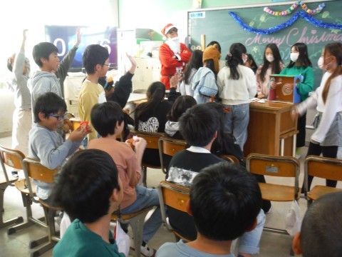 今日は,各クラスともクリスマス会,お楽しみ会をしていました。箱の中身には何が入っているのかを当てるゲームや宝探しゲーム,外では鬼ごっこをして楽しんでいました。あと1日で2学期が終わりますね。