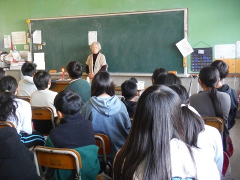 今日は,2時間めお話花束の会の方にきていただき,お話を聞かせていただきました。今日もたくさんのお話や本を紹介していただきました。蝋燭の火とともにお話を味わっていたようです。