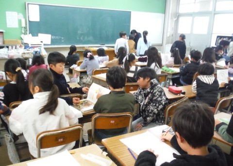 (上の写真)(中の写真)今日の登校指導のコースを確かめていましたよ。(下の写真)一人ひとりに通知表を渡していました。2学期はどうでしたか。