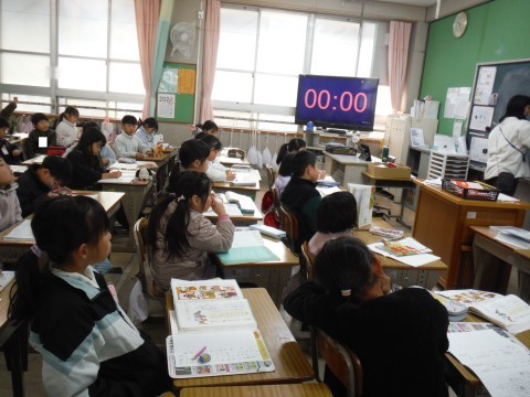 (上の写真)国語の時間の様子です。今日は,「カタカナで書くことば」について考えました。カタカナを使って,文章を作り発表しました。(中の写真)図書の時間の様子です。今日は,冬休みに借りた本を返却しました。借りたい本を,さっそく見つけ読書タイムです!!(下の写真)算数の時間の様子です。今日は,「1000より大きなかず」について調べました。教科書に描かれている1円玉が何枚あるのかを,数えました。