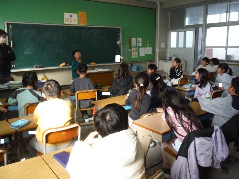 (上の写真)算数の授業後に,6年生のお別れ会の曲のアンケートに答えていました。曲を聞きながら,歌う曲を選びました。(下の写真)こちらも授業後に,みんなでジェスチャーゲームをしていたようです。前の人の振りを見ながら想像しました。