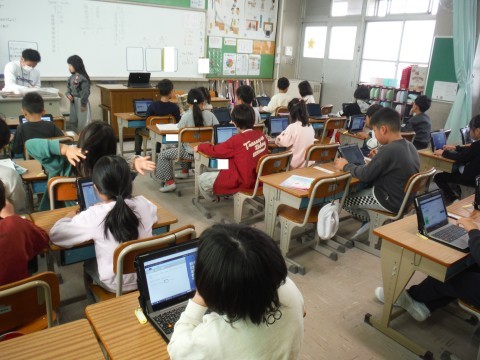 今日は,どのクラスも算数をしていました。(上の写真)99より大きなかずを,教科書の落ち葉の絵を数えながら習いました。(中の写真)「76」という数字を,ブロックを操作しながら表しました。(下の写真)こちらでは,学習後にタブレット端末をつかい,ドリルパークの問題をといて,復習しました!!