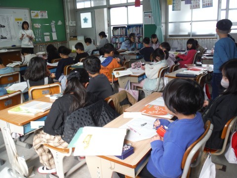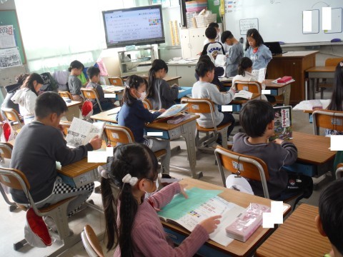(上の写真)道徳の時間の様子です。今日は,「みんなじょうず」のお話をとおして,自分のいいところを見つけましたよ。(中の写真)国語の時間の様子です。今日は,「どうぶつの赤ちゃん」について,生まれたばかりや大きくなる様子について考えました。(下の写真)算数の時間の様子です。100までの数を数直線に表しました。練習問題を解き,先生に確認してもらいました。