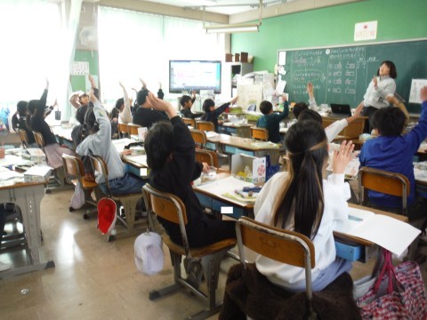 (上の写真)図工の時間の様子です。今日は,日は,スチレン版画を刷りました。赤や緑,青,黒などのインクの色を選び,型押しヘラなどで描いた模様がとても素敵に刷りあがっていました。(下の写真)理科の時間の様子です。今日は,2つの磁石を近づけるとどうなるのかについて探りました。みんなで予想を立て,確認していました。