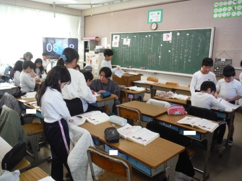 (上の写真)国語の時間の様子です。今日は,「風船でうちゅうへ」の中の部分,それぞれの特徴や筆者の考えなどを文章の中かから探りました。(中の写真)(下の写真)どちらも道徳の時間の様子です。今日は,「ちょっと待ってよ」というお話をとおして,誰に対してもわけへだてな行動するために大切なことを考えました。考えたことを,友だちに伝えたり,グループで意見出し合ったりしました。